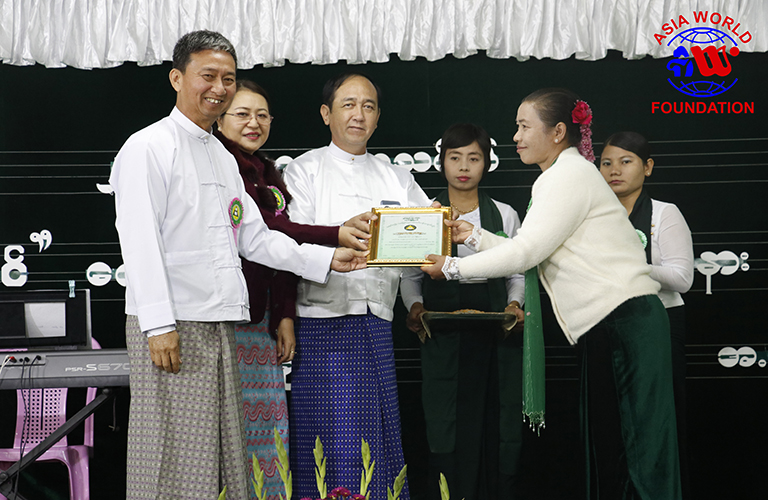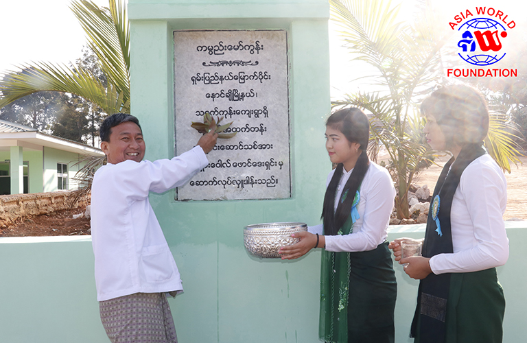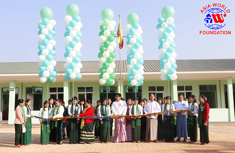 Asia World Foundation’s donation of a Basic Education High School building in Thayat Kone -1 Village, Naung Cho Township, Northern Shan State was officially handed over to the region’s Ministry of Education on 29 January 2019. At the opening ceremony, Director General of Civil Aviation Department U Min Lwin and Education Officer of Naung Cho Township Daw Ni Ni Kyaw and Headmistress of the high school Daw Nan Nyunt Nyunt presided over the ribbon cutting and handover ceremony.